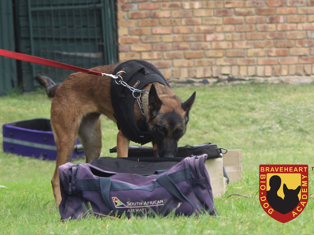 Braveheart Bio-Dog Academy trains K9 Explosives Detection Dogs capable of detecting all commercial and military explosives, including the elusive “Mother of Satan” explosives. These substances previously evaded detection by dogs, handlers, and security equipment at entry ports such as airports, due to their lack of metal content.
